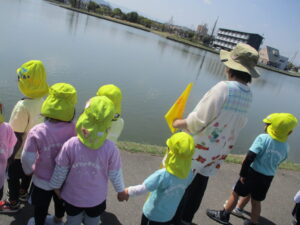 亀や鴨などの生き物を見つけると嬉しそうに観察していましたよ。