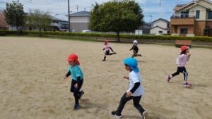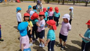 らいおん組の子どもたちは松縄町園、宮脇町園の5歳児との交流会のため木太中央公園に出かけました。
