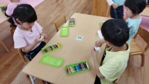 今日のらいおん組はクレヨンを使って「家族の絵」を描きました。