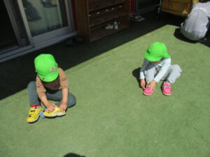 靴も”自分で”と、先生に見守られながら、頑張って履いていました!