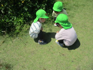 「なんか虫さんがいたよ~!」と教えてくれると、そこにお友達も集まってきて、みんなで虫の観察も始まりましたよ(^^♪