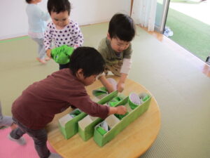 女の子達はお花屋さんごっこをして、お友達とのやり取りも楽しんでいました。