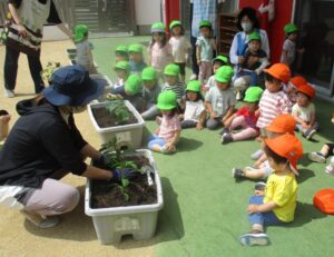 今日のうさぎ組さんとぱんだ組さんは苗植えをしましたよ🌱