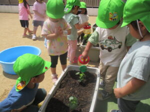 ギュッギュッギュといいながら優しく土のお布団をかけてあげたり、順番を守って交替しながらたっぷりとお水をあげたりしました✨