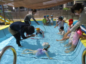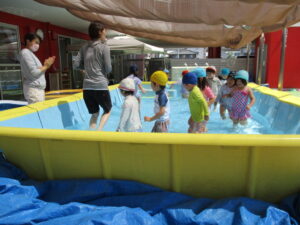 おもちゃを使って水で遊んでみたり、潜ってみたりとそれぞれがとても楽しめていました。