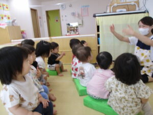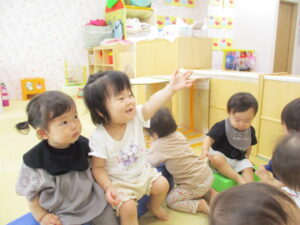 歌や手遊びが好きなりす組さんは、歌に合わせて体をゆらしたり、