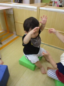お部屋では、マットのお山をハイハイで登ったり、ゴロゴロしたり、