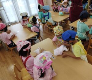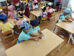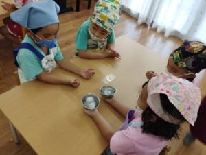 今日のらいおん組はプール遊びの後、シャーベットづくりをしました。