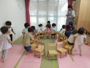 初めてなので、椅子は減らさずにピアノの音が止まったら椅子に座る、という流れを繰り返しました😺