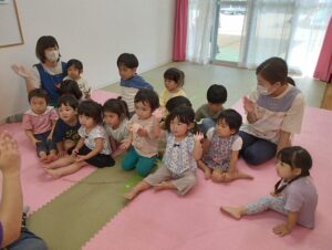 絵本の歌に合わせてジェスチャーをして楽しみました😌