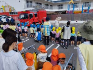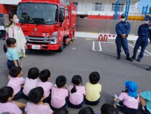 今年も高松南消防署の方が消防車とともに来てくださいました。