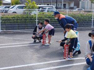 その後らいおん組さんは特別に消火訓練に参加しました。