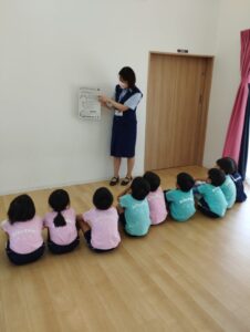 最後は、「車のドアを開けない」「シートベルトをがっちゃん!」「お家の人と手をつなぐ」など、お家の方とお出かけをした時のルールも教えてくれました☆