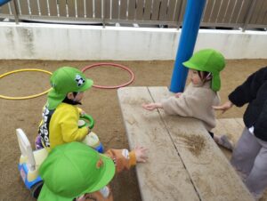 お友だちと追いかけっこをしたり、お店屋さんごっこをしたり、