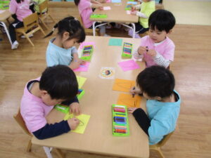 リトミック教室の後は、製作あそびをしました。