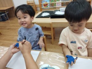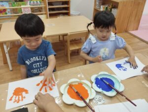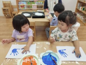 一つ目ができると一度手を洗い、もう一つの手も同じようにスタンプしました♪