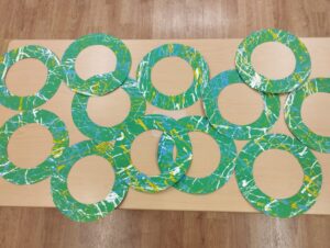 ”♬どんぐりころころどんぐりこ~” と歌いながらどんぐりを転がして、模様が付いていく様子を楽しんでいました!