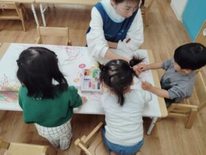 今までは点々を描いていた子が、いつの間にか線が描けるようになっていて成長を感じました😊