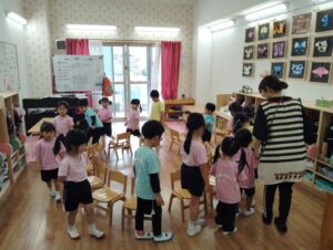 音楽をよく聞いて、止まったらサッと座れるのはさすが以上児さんですね✨