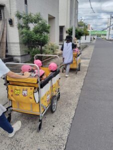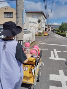 お散歩の途中では、うさぎ組さんのお友だちがいるのを見つけて「ばいば~い👋」と手を振りましたよ💓