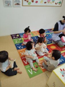 先生と一緒にお花やトンボを見つけて指差しをしたりしながら、ニコニコで楽しみました😊