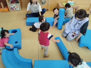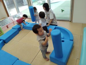 “ よいしょっよいしょっ” とブロックの上を登ったり・・・