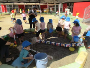 そして避難訓練のあとは、ぞう組さんはどろんこ遊びを楽しんでいました!