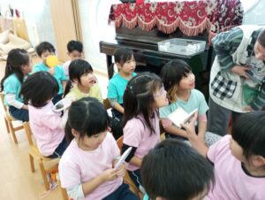 お菓子を食べ過ぎた鬼のお話も見て、歯を大切にしていこうねと約束しました。