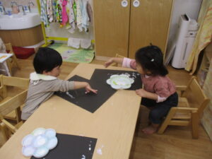横一列にスタンプしたり、ダイナミックに全体にしたりと、一人ひとりの個性が見られました☺
