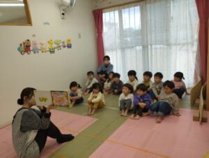 いつもと違う座り方に少しドキドキしている様子もありましたが、みんな上手に姿勢を整えながら参加することができました。