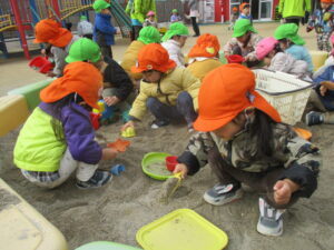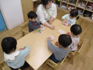 お部屋に入ってからは手先を使う遊びとして、ポットン落としを楽しみました😊