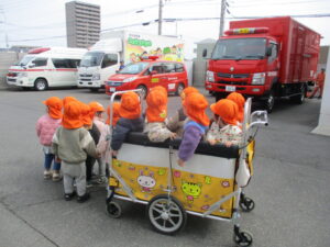 「大きいね~」「救急車もいるね!」と大喜びの子どもたち🌟