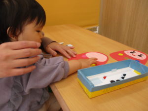 自分で好きなおもちゃを見つけて遊びこんだり、いろいろなおもちゃに興味を持って少しずつ試してみたり、一人ひとりがそれぞれの遊び方で楽しんでいます。
