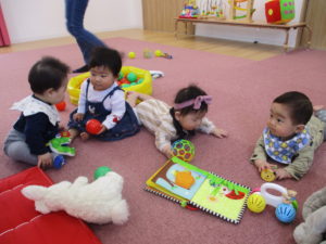 今日は、ハイハイやよちよち歩きの元気なお友だちが遊びに来てくれました。
