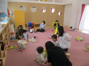 みんな思い思いにおもちゃで遊んだり、お友達のおもちゃが気になって見にいったり、お母さんと一緒にお話ししながら楽しんでいました(*^^*)