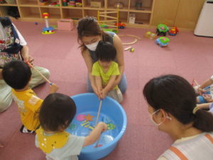 水あそびができなかったのは残念でしたが、魚が釣れてニコニコのお顔が見れたり、元気にお部屋で遊ぶ姿が見られて嬉しかったです♪