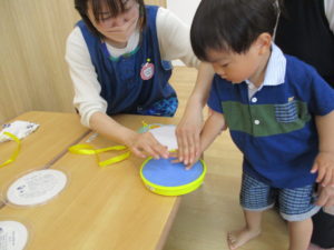 手形スタンプを取って”お誕生カード”を完成させていきました(^^♪