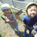 園の畑できゅうりを収穫しました🥒