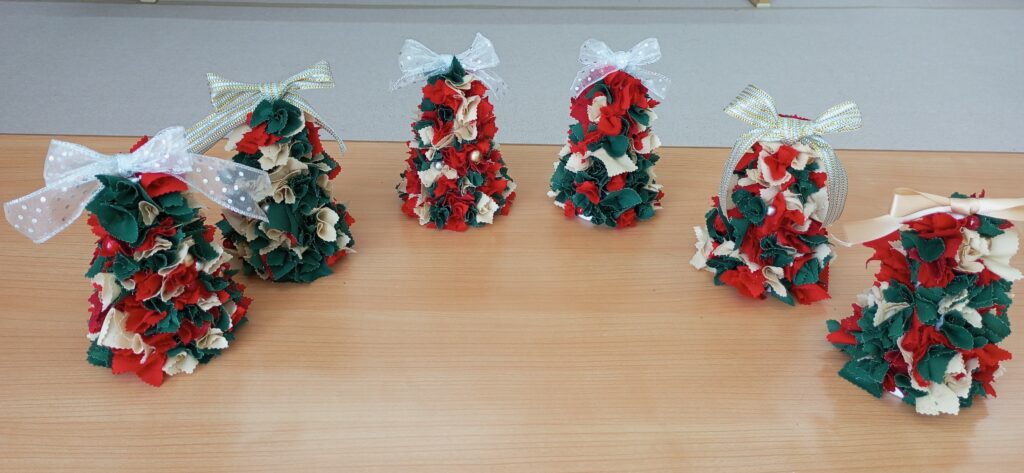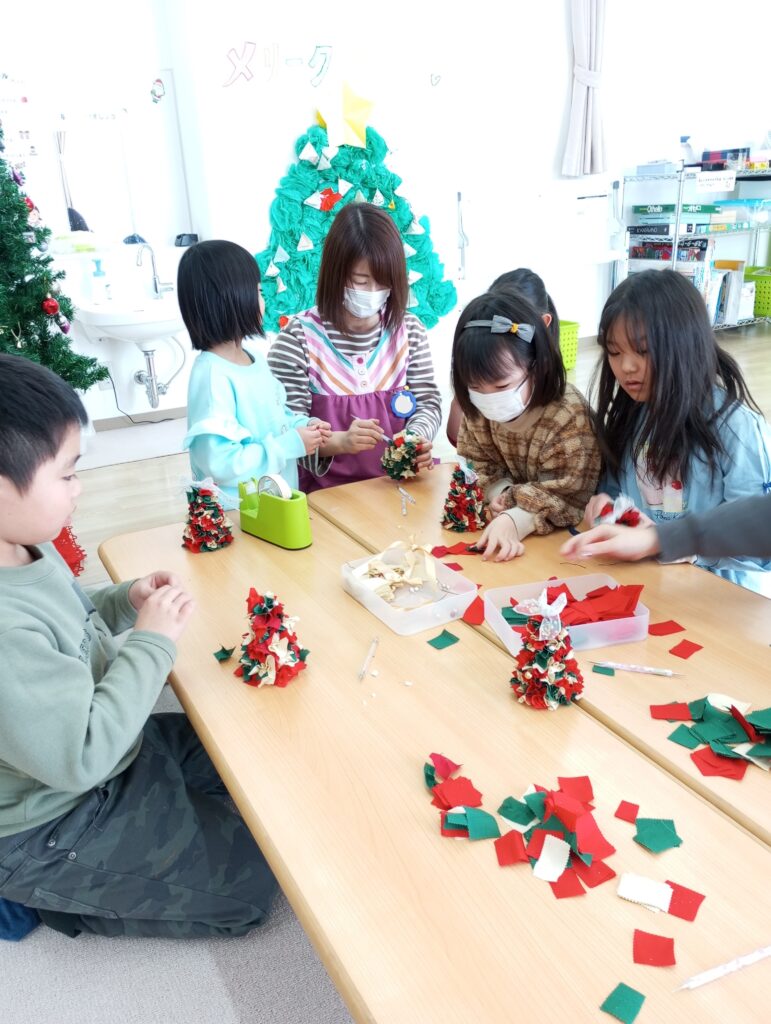 クリスマスカラーの布を使って、それぞれ真剣に取り組んでいますね(o^―^o)