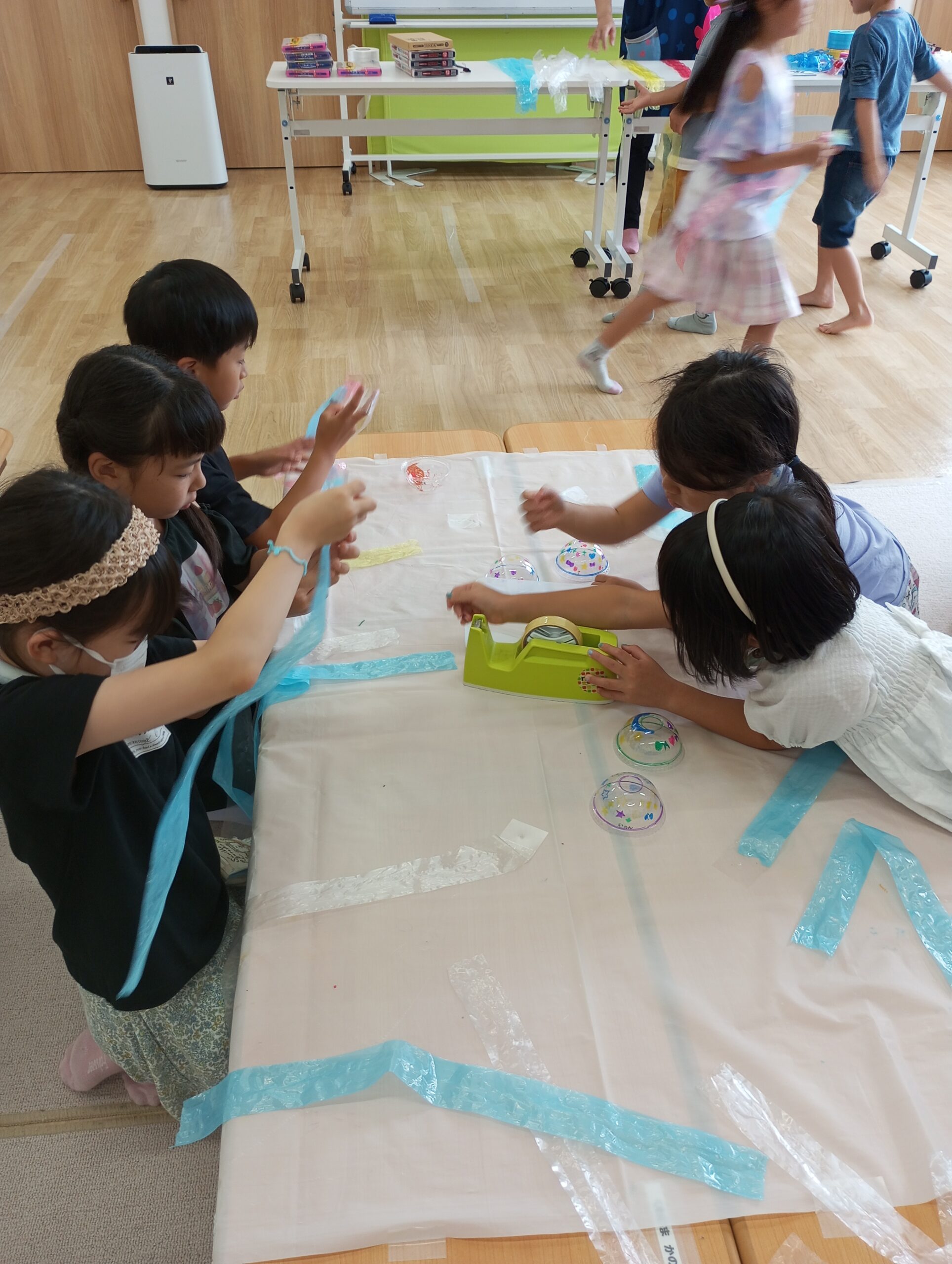 風鈴の吹き流しを割くのに苦戦していましたが、きれいな風鈴ができました。