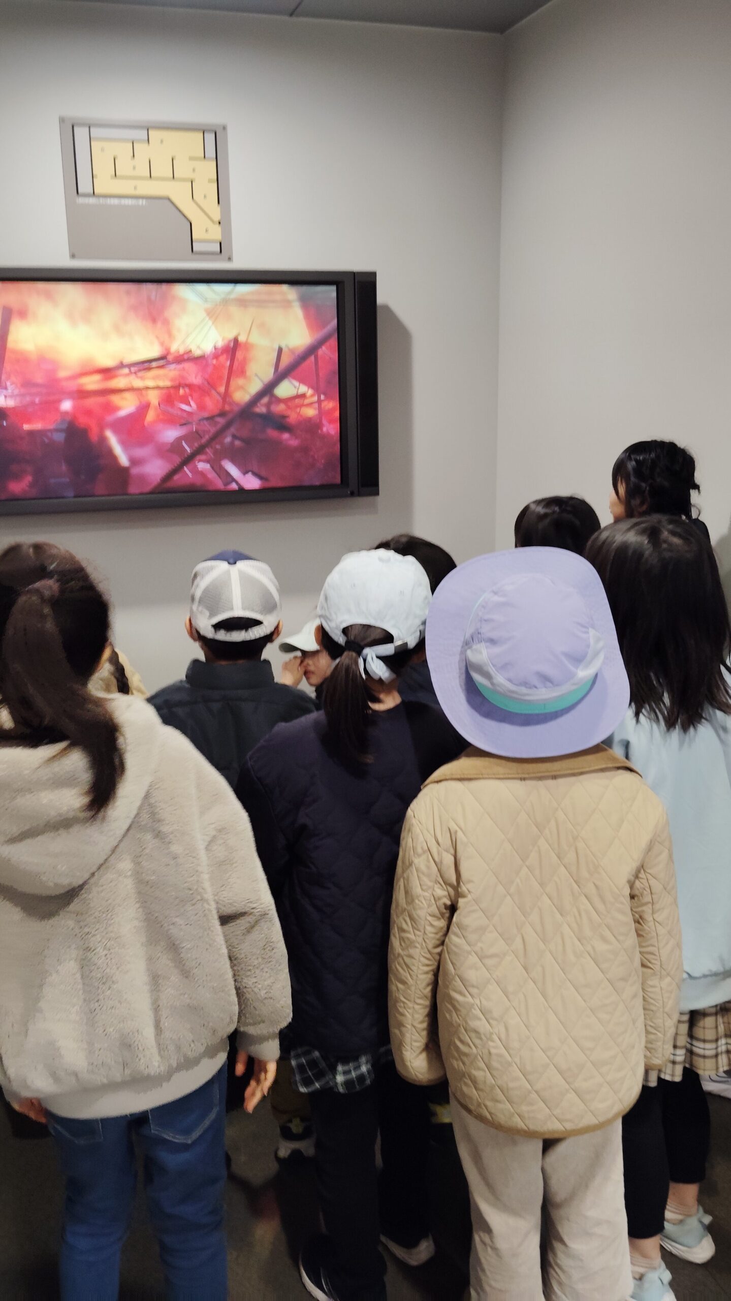 火災の映像を見た後は、煙の中を避難する訓練や震度6の揺れを体験することができました。