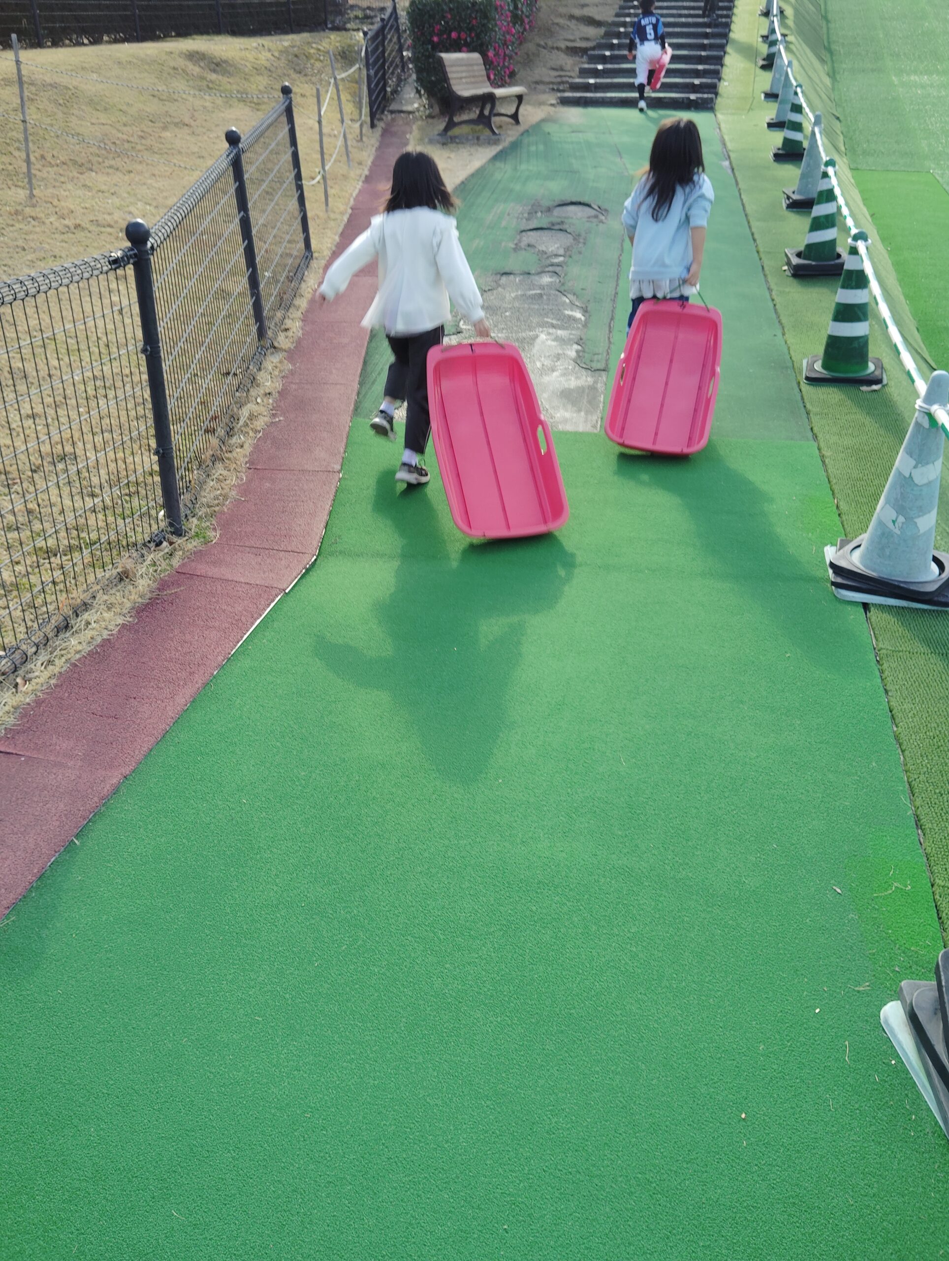 今日は、さぬき空港公園で「そり遊び」を楽しみました。
