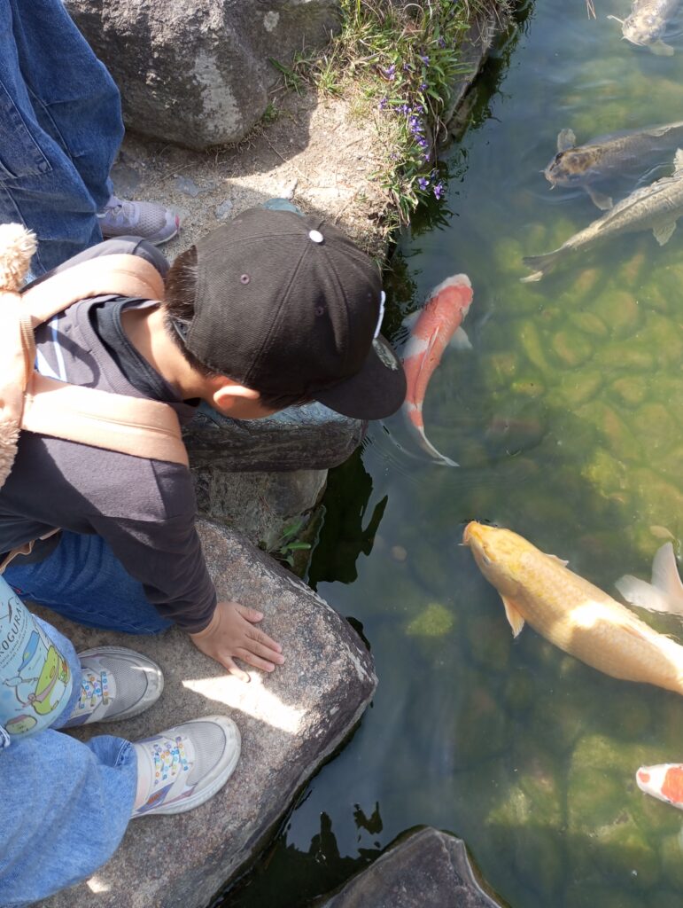 公園を散策する中で、鯉を見つけて大喜びの子どもたちでした😊