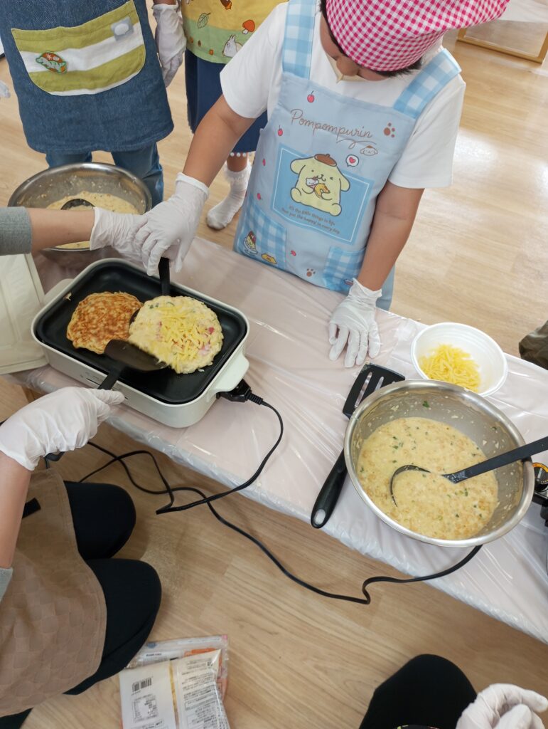 自分で作ったお好み焼きはとってもおいしかったようです。楽しいクッキングでした(^-^)