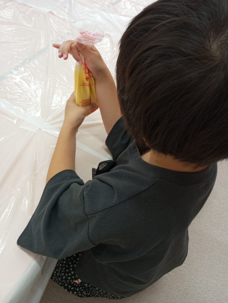 ホットケーキミックス粉とオレンジジュースを使って作っていきます(^-^)