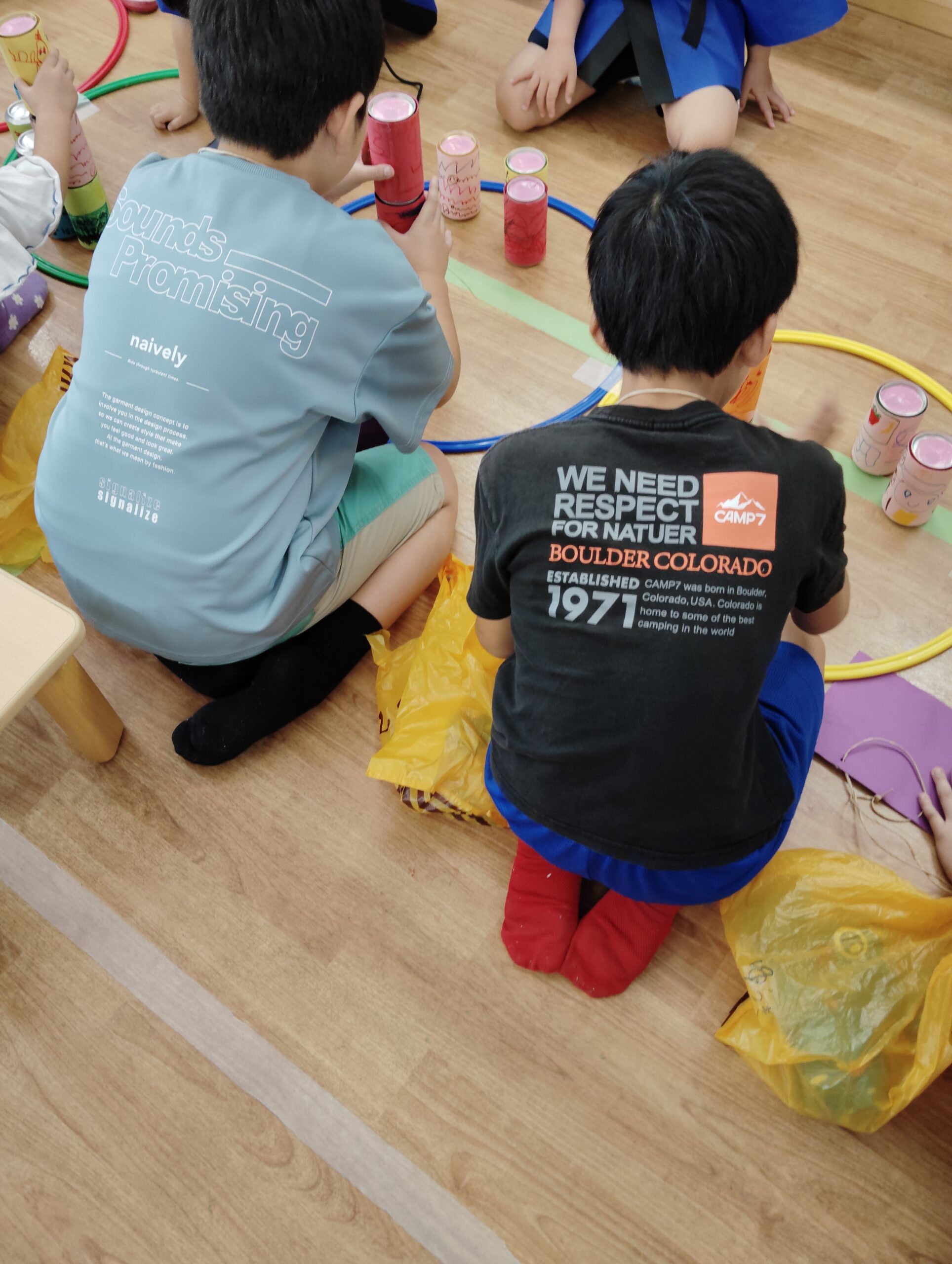 お店を回ってたくさん景品をもらってみんなで見せ合いっこ。