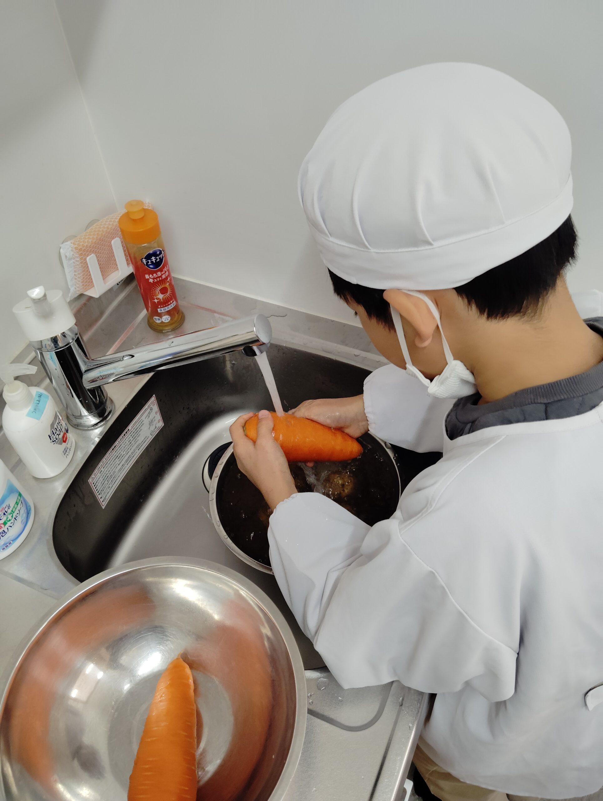 野菜を洗うことから始めます。