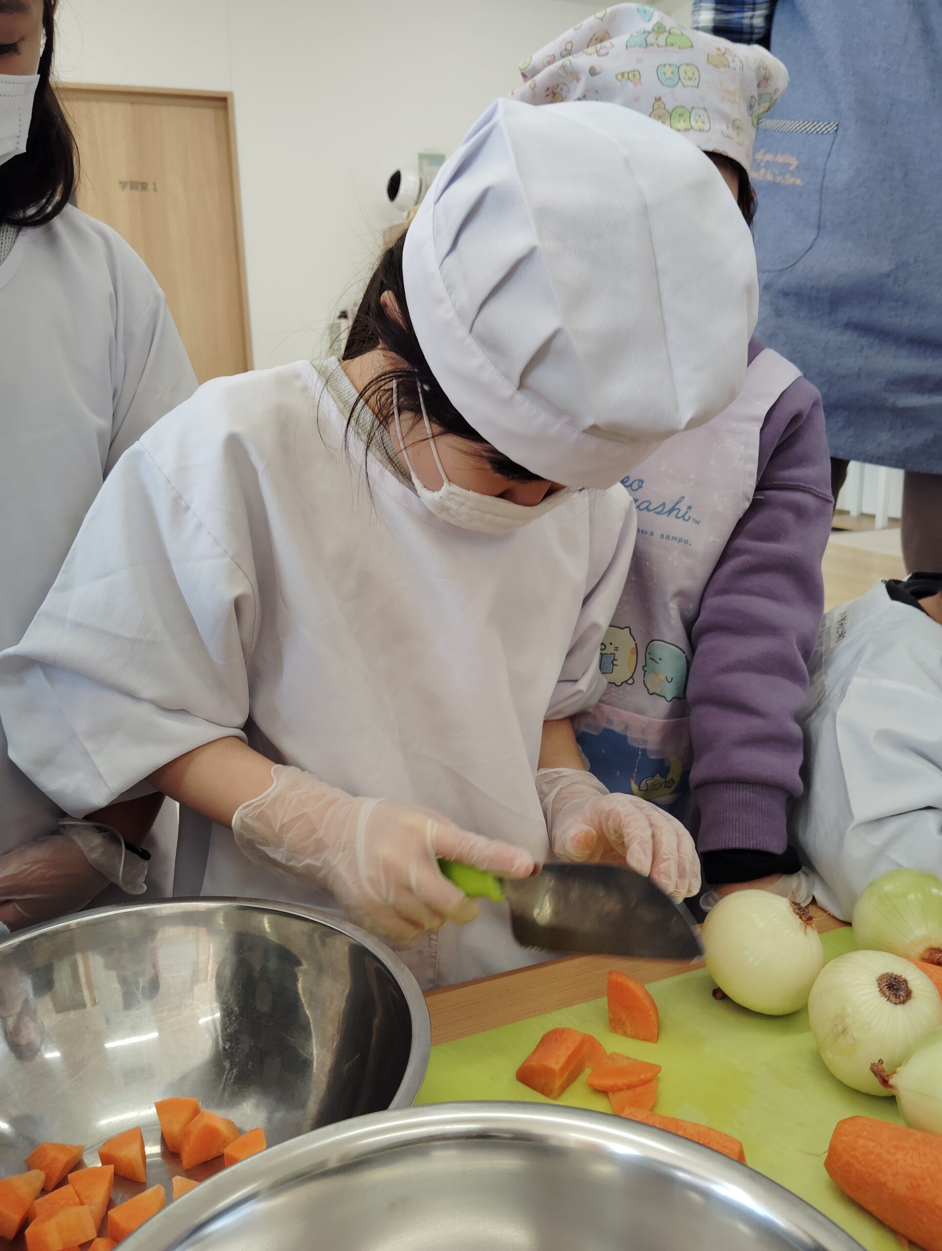 皮をむいたり包丁で切る作業は全員が経験しました。