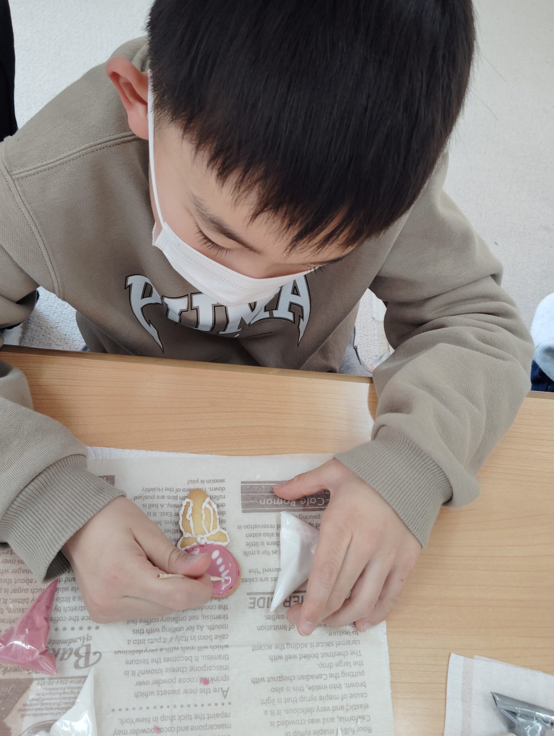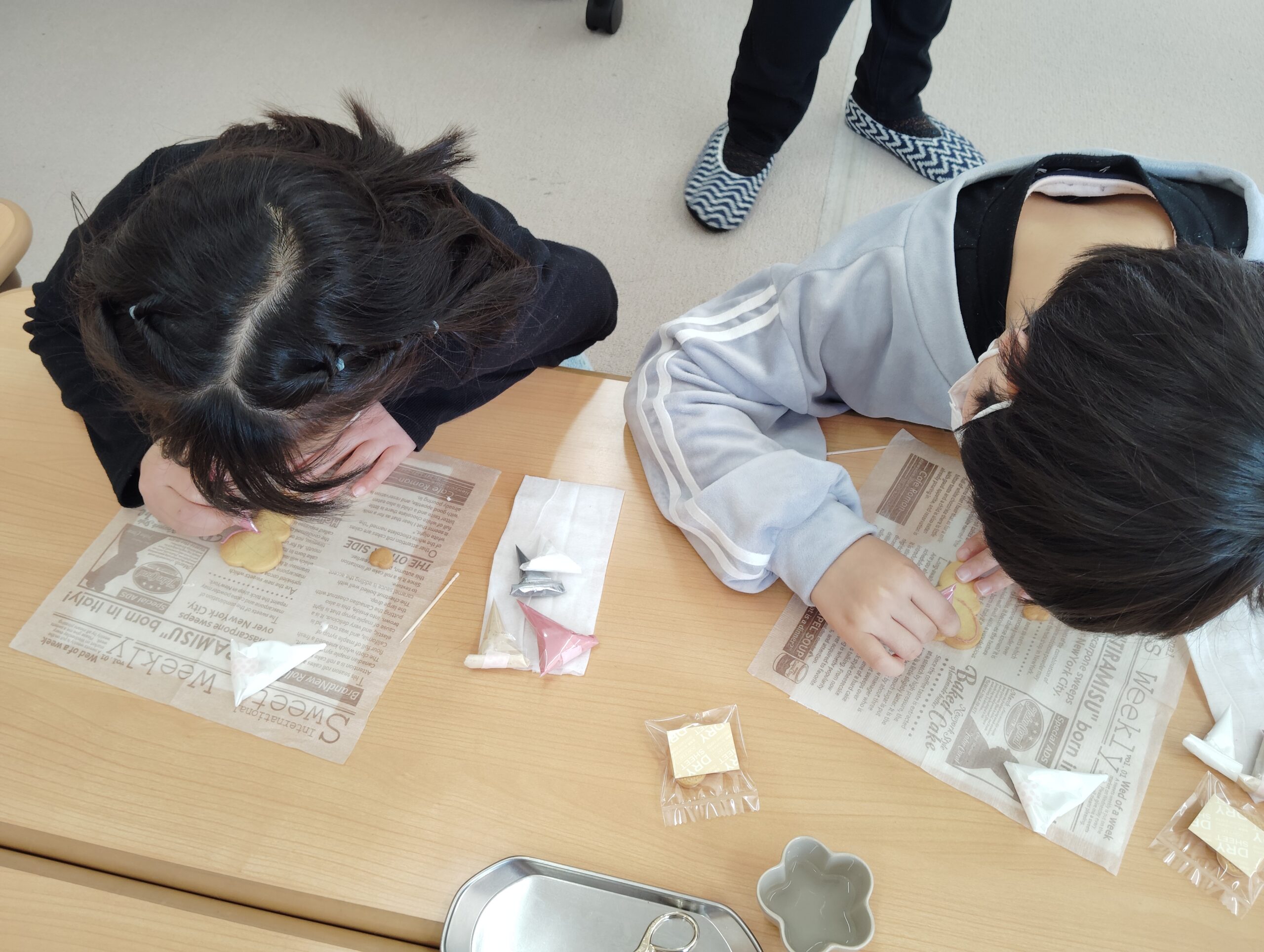 みんな初めは緊張気味にクリームの先っぽを切って縁取りをしていましたが、慣れてくると「次はどうするん?」「この模様やってみたい♡」と自分だけのオリジナルなクッキーになっていきました。