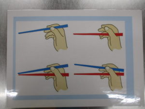 お箸に色を付けているので、だんだんと正しい持ち方から変わっていったり、クロス箸になっているのがよくわかりました。